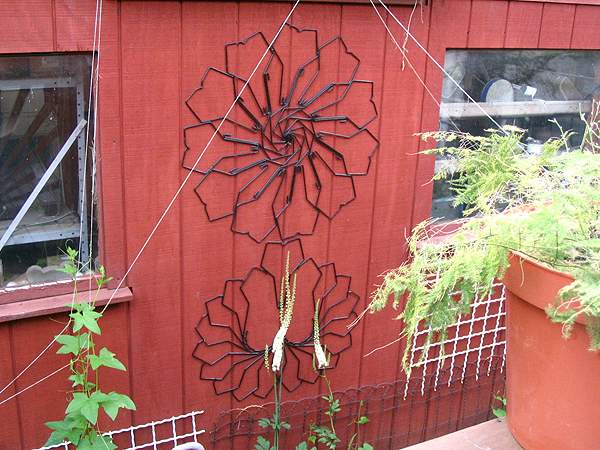 Other decor includes 24" and 45" reversible flower patterns, 14" and 28" 'vase' patterns, 5x4' trellises, 24" border fences, and 54" wall decor. Additional designs can be produced using other modules shown in the Fence Decor section.